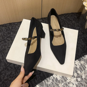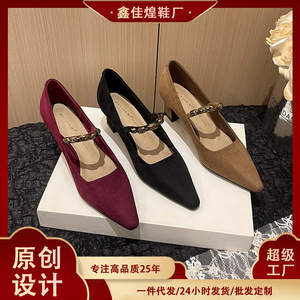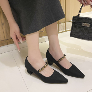 5168-6 法式羊绒小方头气质一字带高跟鞋女粗跟单鞋中跟不累脚秋