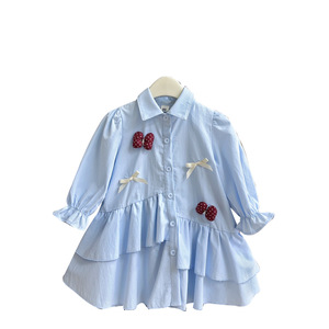 女童韩版洋气衬衫裙春秋季新款小女孩蝴蝶结长袖连衣裙CM0799