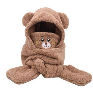 冬季保暖防风防寒护耳高级感新款可爱小熊帽子围巾一体口罩四件套