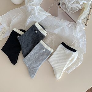 Mekki袜子女珍珠装饰新款中筒袜女袜秋冬日系ins潮休闲初秋棉袜