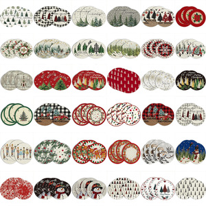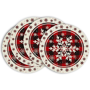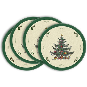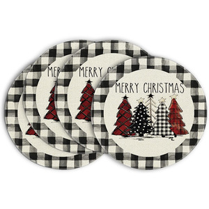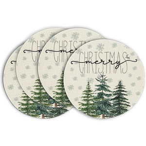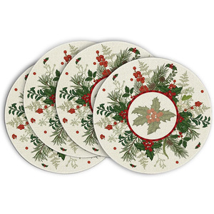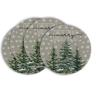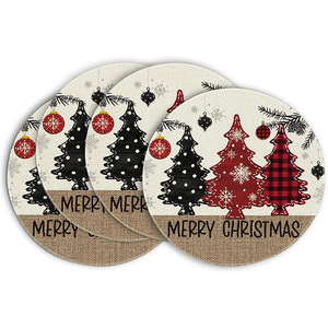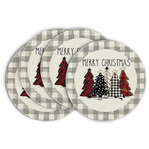 亚马逊爆款节日款圣诞节圆餐垫餐厅氛围布置桌垫印花/4件套