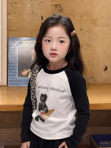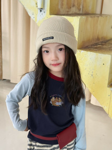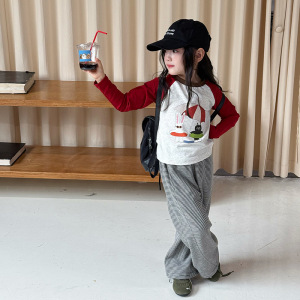 艾摩贝贝儿童拼色打底衫上衣女童修身撞色高弹棉罗纹插肩辣妹T恤
