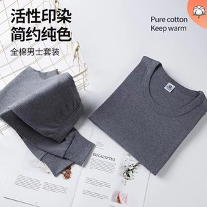 100%纯棉保暖内衣男士女士薄款打底全棉毛衫秋衣秋裤套装超市