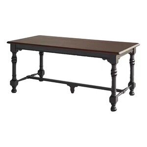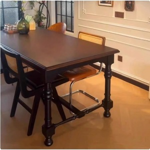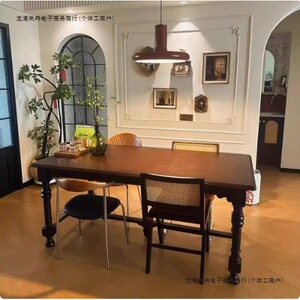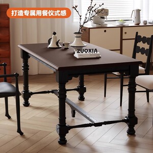 法式实木餐桌家用小户型中古风饭桌黑色桌子侘寂风美式乡村别墅桌