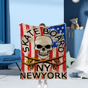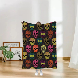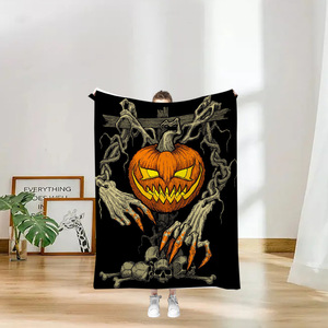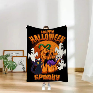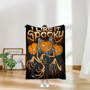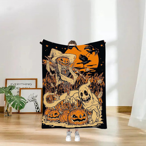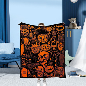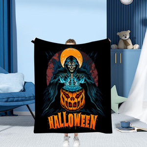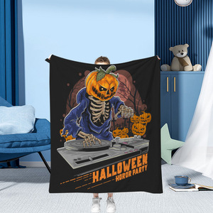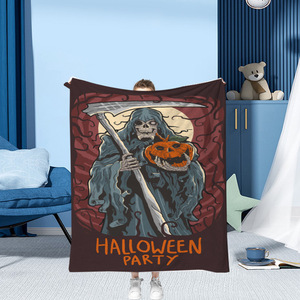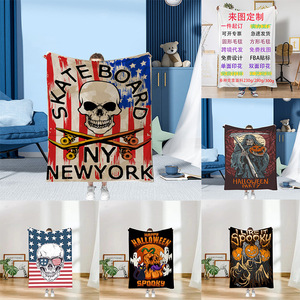 亚马逊万圣节法兰绒毛毯单面数码印花午休空调盖毯卡通动漫