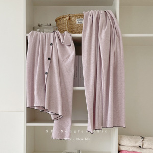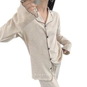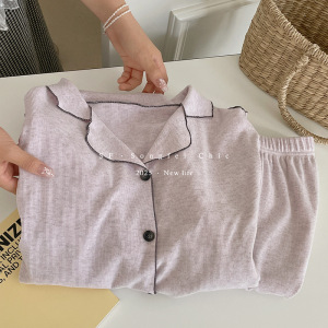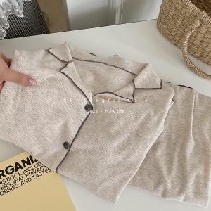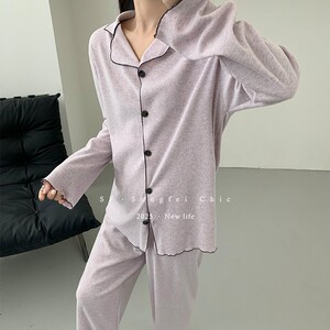 女士睡衣2025秋冬新款撞色螺纹家居服翻领纽扣长袖长裤亲肤套装