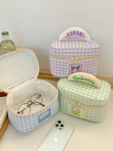 2025新款格子立体大容量女化妆包手提可爱洗漱包便携旅行收纳包袋