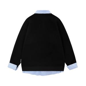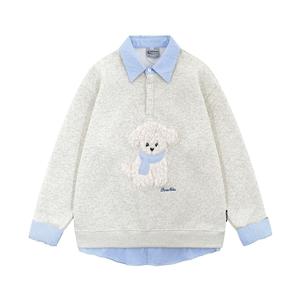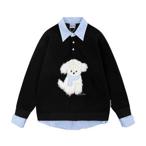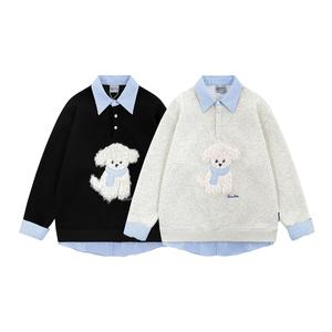 美式学院风围巾毛绒小狗Polo领卫衣男女休闲设计感假两件情侣上衣
