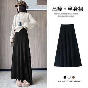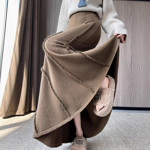 复古咖色流苏针织半身裙女秋冬2025新款高腰显瘦垂感a字大摆长裙