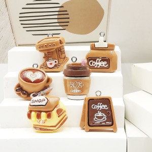 卡通仿真树脂咖啡机钥匙扣咖啡包包挂件立体吊坠耳环挂件DIY配件