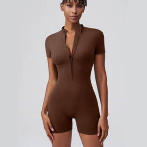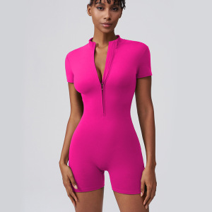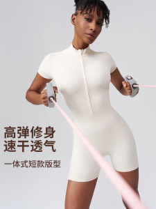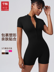 HD连体瑜伽服欧美一体立领拉链紧身速干外穿短裤瑜伽连体衣健身服