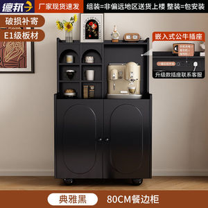 法式轻奢黑色实木餐边柜茶水柜小户型客厅斗柜沙发旁柜咖啡机柜