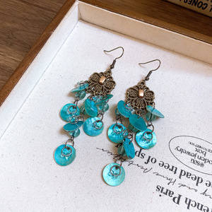 7#玻璃珠花朵圆形贝壳流苏耳钩