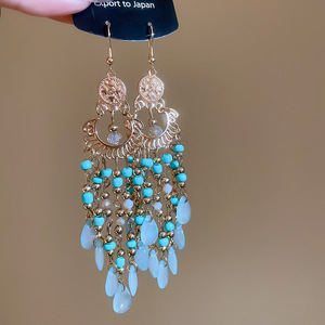 中古vintage花朵流苏耳钩复古民族风时尚百搭耳环设计感小众耳饰