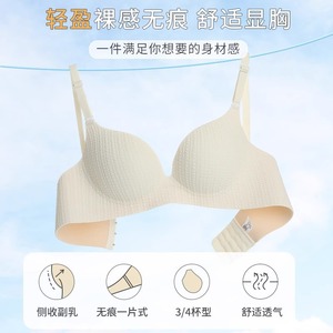 无痕内衣女小胸聚拢显大显圆无钢圈上托收副乳防外扩一片式文胸
