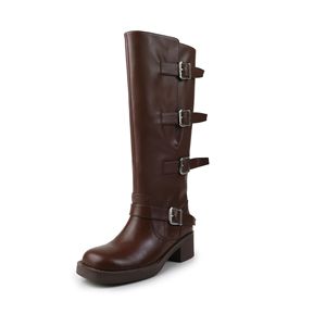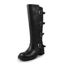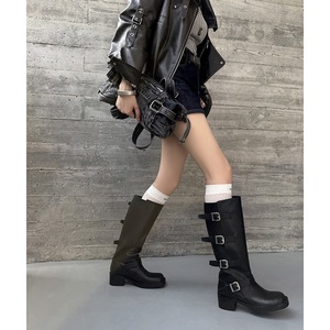 回头率爆表缪风皮带扣全牛皮骑士靴2025粗中跟真皮加宽高筒长靴女