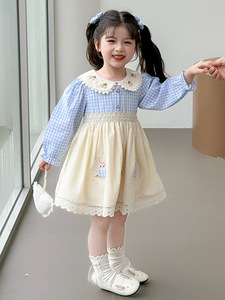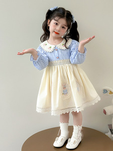 女小童洛丽塔公主裙2025秋季新款女宝宝洋气甜美春秋娃娃领连衣裙