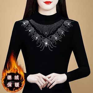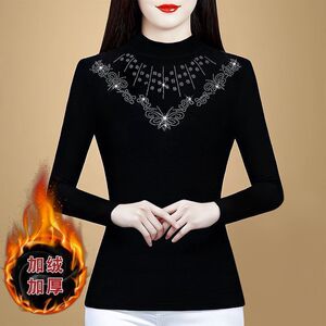 洋气薄款薄绒2025修身秋冬长袖打底衫女蕾丝大码胖MM上衣T恤女ins