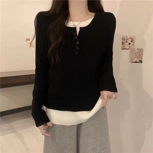 灰色假两件长袖德绒衫女秋冬季新款宽松洋气减龄内搭打底衫上衣女