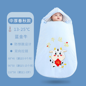 蓝金牛送福-防惊跳抱被+睡袋A类中厚