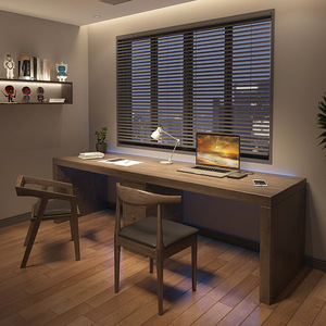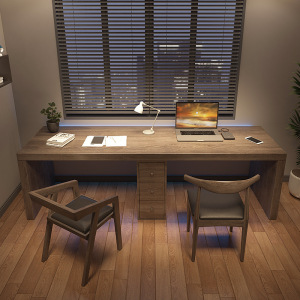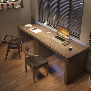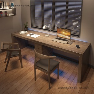 简约带抽屉双人位实木书桌家用民宿主题创意设计书桌工作台电脑桌