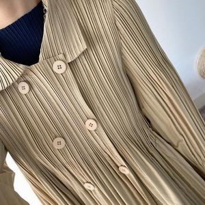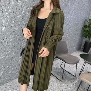 三宅褶皱秋冬系列 双排扣宽松时尚百搭翻领中风衣外套