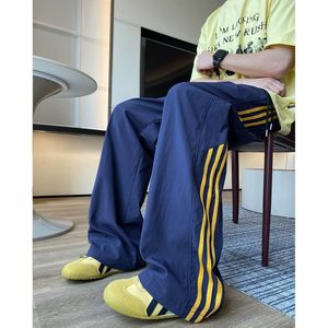 美式三条杠速干冰丝裤男款夏季薄款运动长裤宽松直筒阔腿休闲裤子