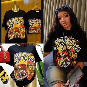 300克欧货网红个性印花纯棉短袖T恤休闲透气女士薄T2025夏季潮牌
