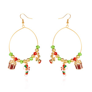 欧美热销圣诞节日圣诞树麋鹿姜饼人合金吊坠耳环红绿彩珠耳圈饰品