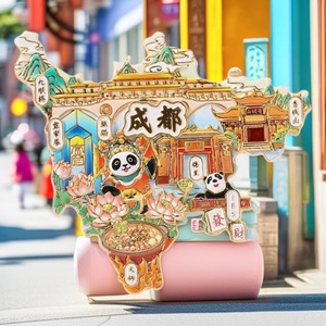 成都文创冰箱贴中国城市熊猫火锅地图款冰箱贴家居装饰旅游纪念品