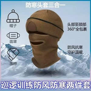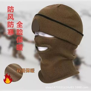 新式防寒面罩双面防寒面罩帽子套装棕色两面可戴边防巡逻帽子面罩