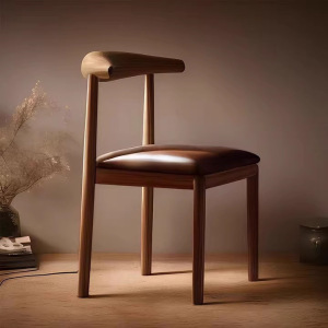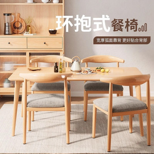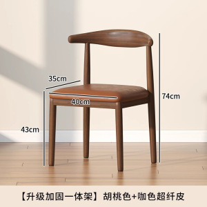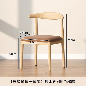 餐椅家用现代简约餐厅凳子快餐店椅子原木风餐厅靠背铁艺牛角椅
