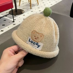 森系儿童帽子秋冬款针织瓜皮帽宝宝保暖奶嘴帽男女童卡通毛线帽子