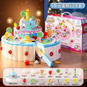 蓝色【三层声光可吹灭】蛋糕62件套+礼盒装
