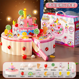 粉色【三层声光可吹灭】蛋糕62件套+礼盒装