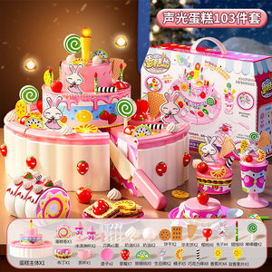 粉色【三层声光可吹灭】蛋糕103件套+礼盒装