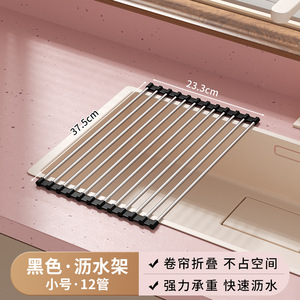 可折叠厨房水槽沥水置物架不锈钢收纳卷帘硅胶洗碗盆池置物碗筷架