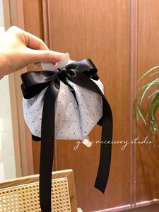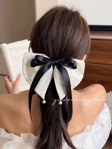 法式温柔黑色波点蝴蝶结马尾抓发夹女后脑勺高级感抓夹温柔发饰