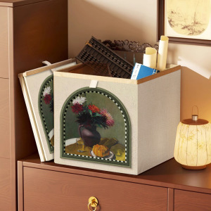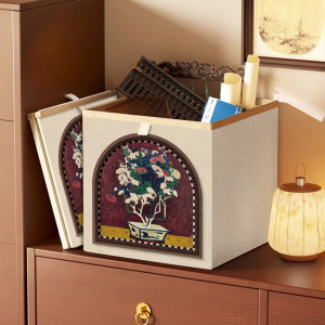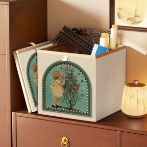 外贸批发收纳箱中古风家用衣物折叠收纳盒大容量复古布艺收纳筐