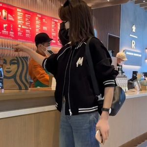2025春秋新款拉条撞色时尚妈妈开衫薄款外套百搭纯色短款棒球服女