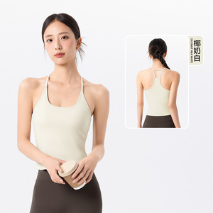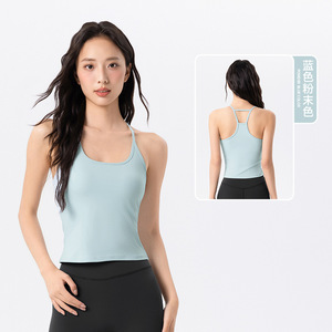 瑜伽背心女细肩带工字美背健身上衣固定杯中强度跑步外穿运动背心