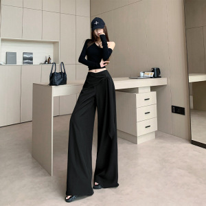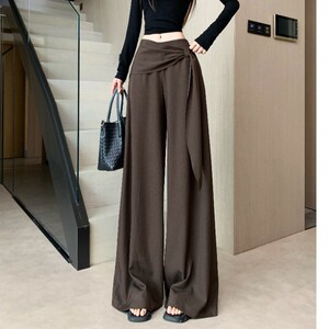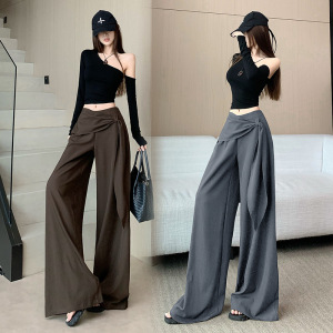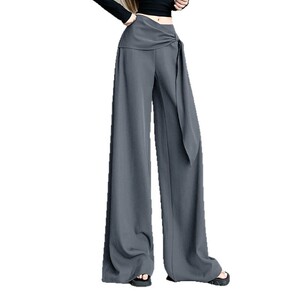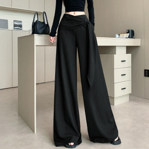 老钱风不规则宽松高腰系带休闲秋季新款复古西装阔腿长裤