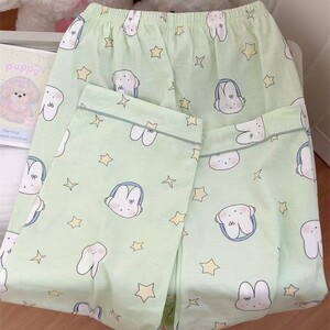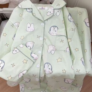绿色小兔子睡衣女春秋季长袖长裤套装美少女ins套装可外穿家居服