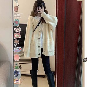 欧美跨境2025秋冬新款纯色毛衣女开衫外套宽松气质服饰针织衫上衣