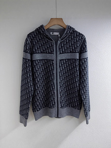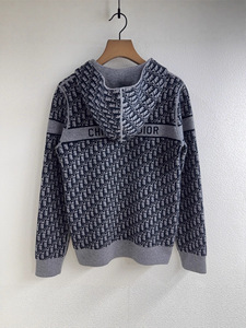 高版本D家25早春双面老花logo连帽针织羊毛毛衣外套男女同款