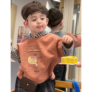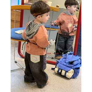 男童韩版假两件条纹连帽卫衣2025春秋季中小童炸街痞帅牛仔裤套装
