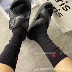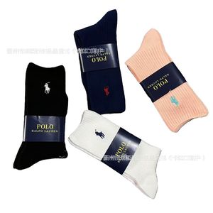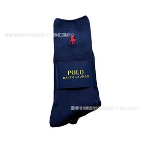 新款POLo袜子双针坑条拉夫劳伦女士简约中长筒男女纯色运动袜