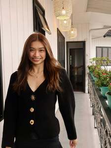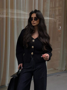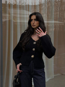 甜美温柔风秋冬新款镂空V领花朵纽扣亮丝毛衣外套女软糯针织开衫