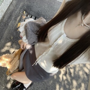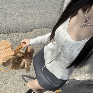 韩系辣妹镂空u领长袖针织衫女秋季设计感小众修身显瘦短款上衣潮