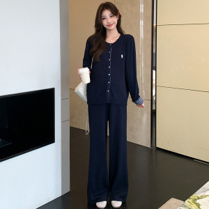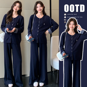 2025秋季新款韩系撞色格子孕妇宽松时尚减龄慵懒风针织孕妇套装